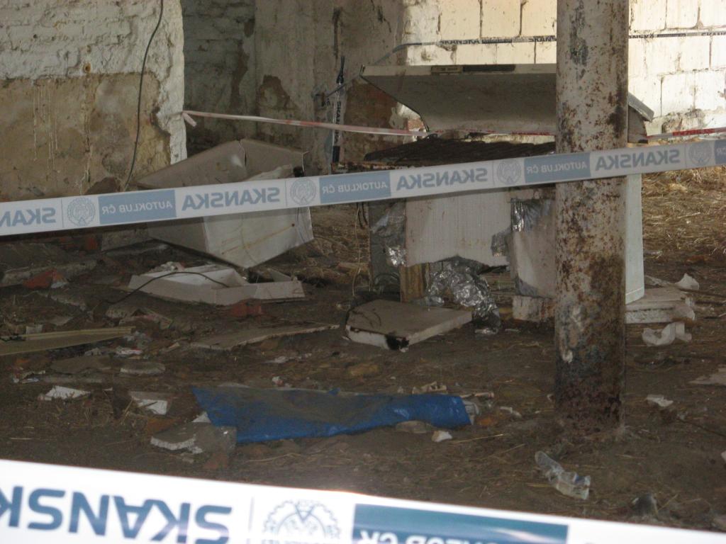 vzdálenou stráň, ve které byla buldozerem vyhrnutá trať,